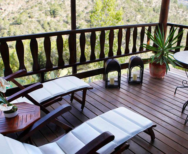 Vlak bij de haven van Sant Miguel ligt hotel Rural C’as Pla stilletjes op een heuvel, omgeven door bossen, palmbomen, bloeiende tuinen en doorkijkjes naar de zee verderop. Toen ik aankwam, stond eigenaar Massimo mij samen met zijn hond op te wachten. En al gauw begreep ik dat ook bij Massimo ‘genieten van het mooie leven’ door zijn aderen stroomt. Binnen in het hotel vind je zitjes, banken en stoelen om te kletsen, een boek te lezen of even weg te dromen. Buiten is een terras op het dak met uitzicht op zee of de sterren in de nacht, of je strijkt neer op het zonneterras bij het zwembad of drinkt een drankje bij de bar. En daar mag je pakken waar je zin in hebt. ‘Wel even zelf bijhouden wat je drinkt.’ Wil je bewegen? Dan duik je de mini-gym in om daarna bij te komen in de sauna of het Turkse stoombad. Een wandelingetje door de bloeiende tuin? Wat je wilt.