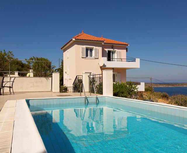 Ik dobber op mijn rug in het heldere water van de Egeïsche Zee, de warme middagzon schijnt op mijn gezicht. Zachtjes dobber ik mee op de koele golven. Wanneer ik net voorbij het strand van Agia Paraskevi kijk, valt mijn oog op twee mooie villa’s boven de baai. Vanaf daar moet je vast een geweldig uitzicht hebben! Zo moet Virginia zich hebben gevoeld, denk ik, want toen zij hier jarengeleden zwom, kwam ze op het idee om deze twee bijzondere villa’s te kopen.